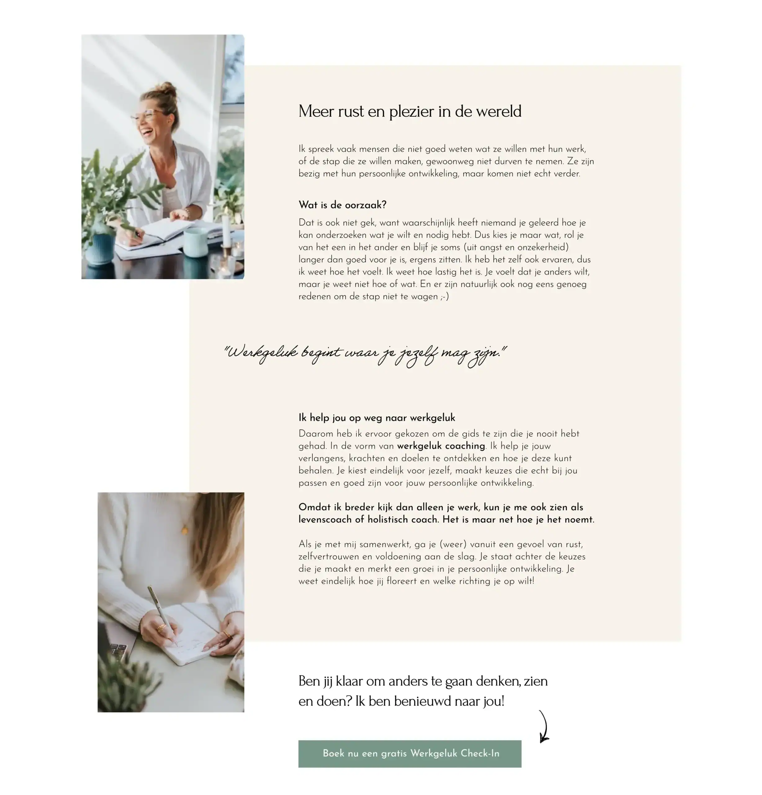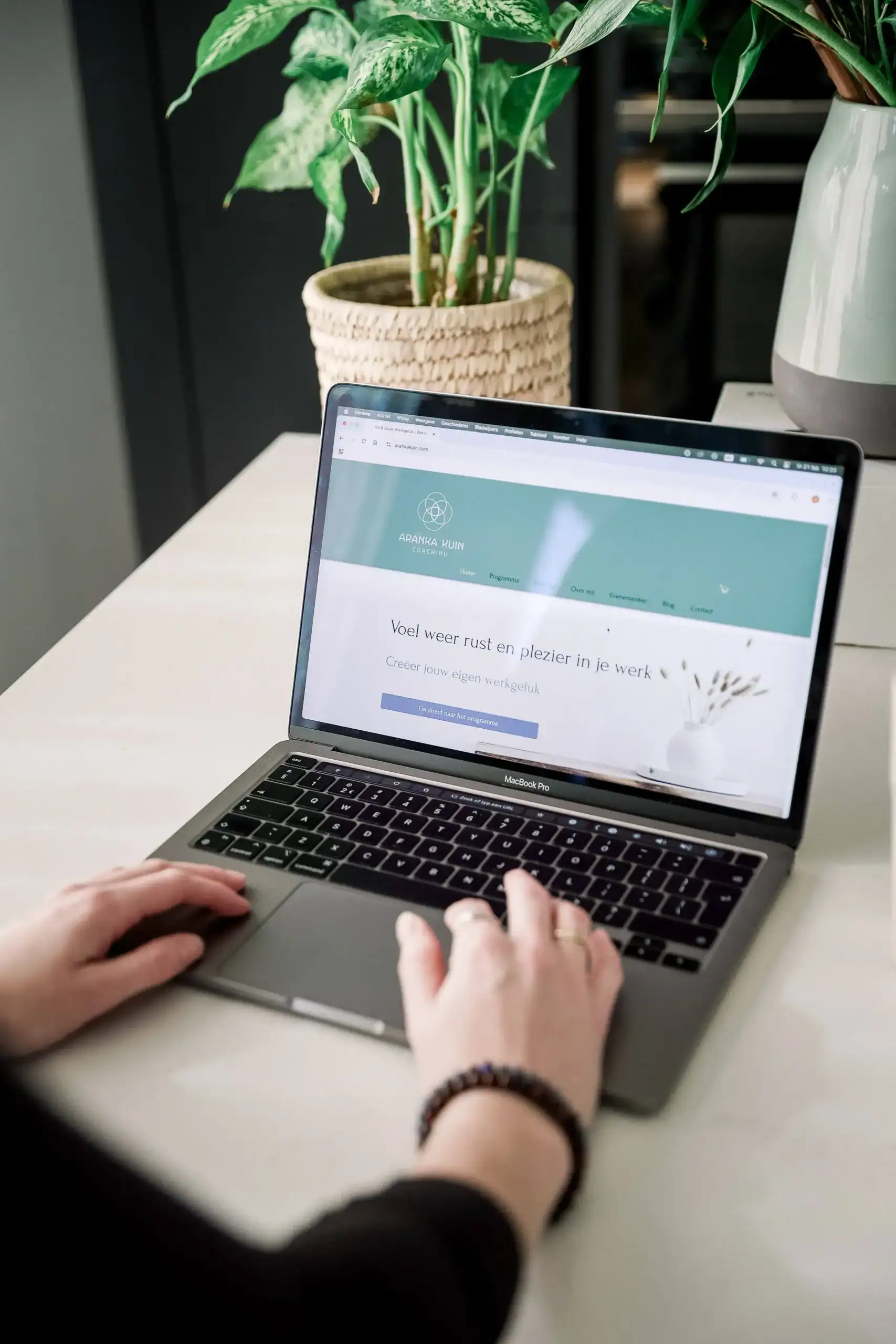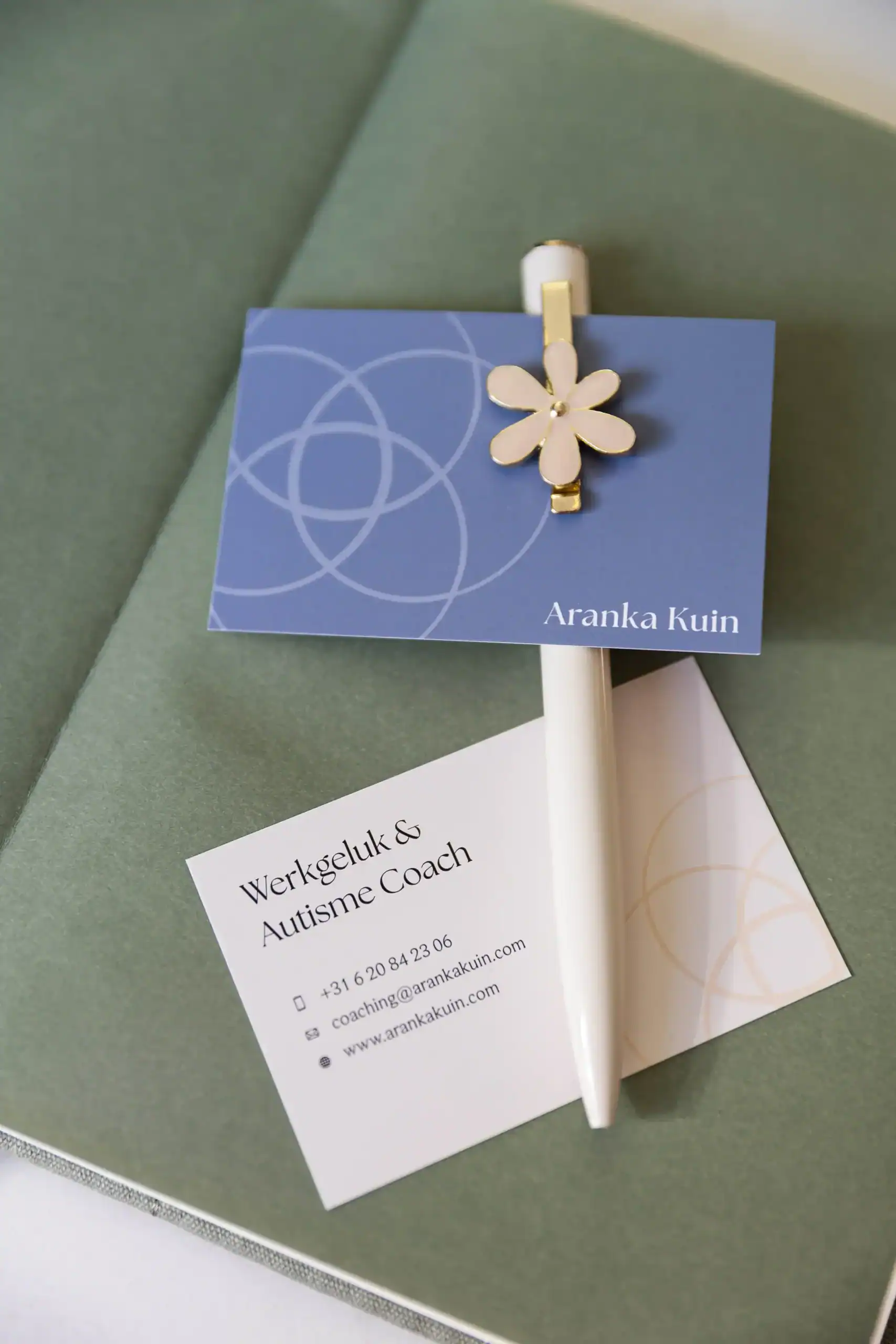 Naast het webdesign heb ik een branding shoot verzorgd, met zowel huiselijke beelden als foto’s in de Hortus. De fotografie laat Aranka zien zoals zij is: open, toegankelijk en betrokken.