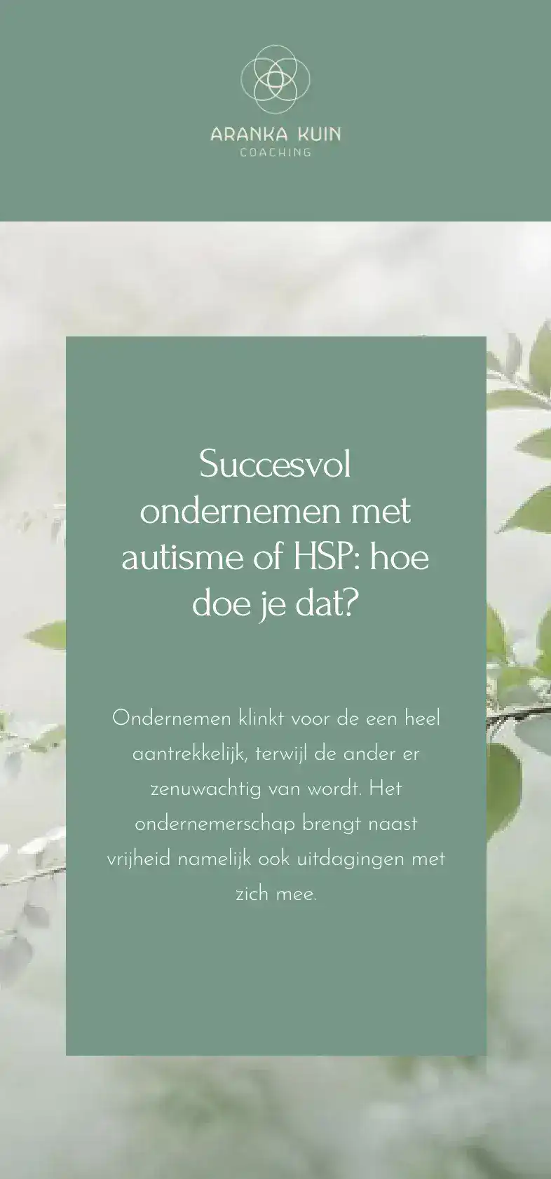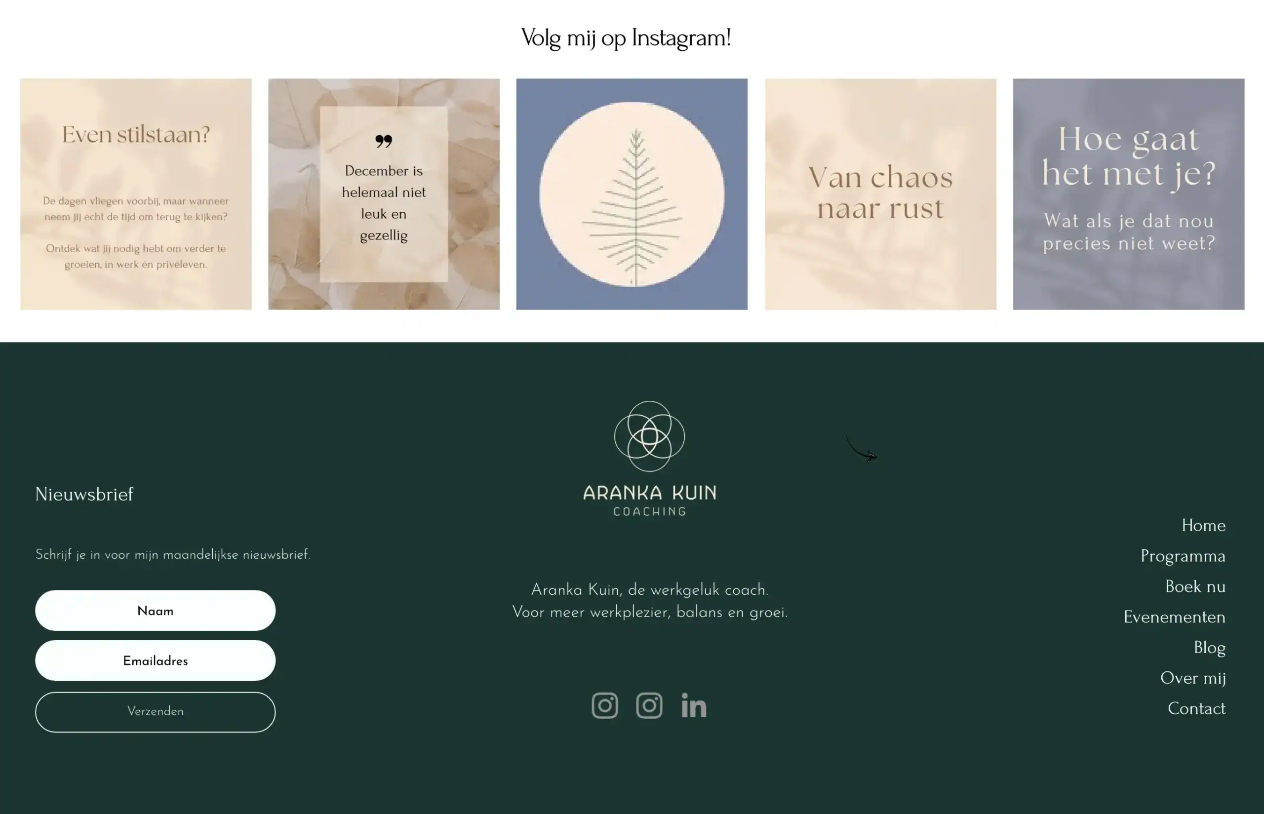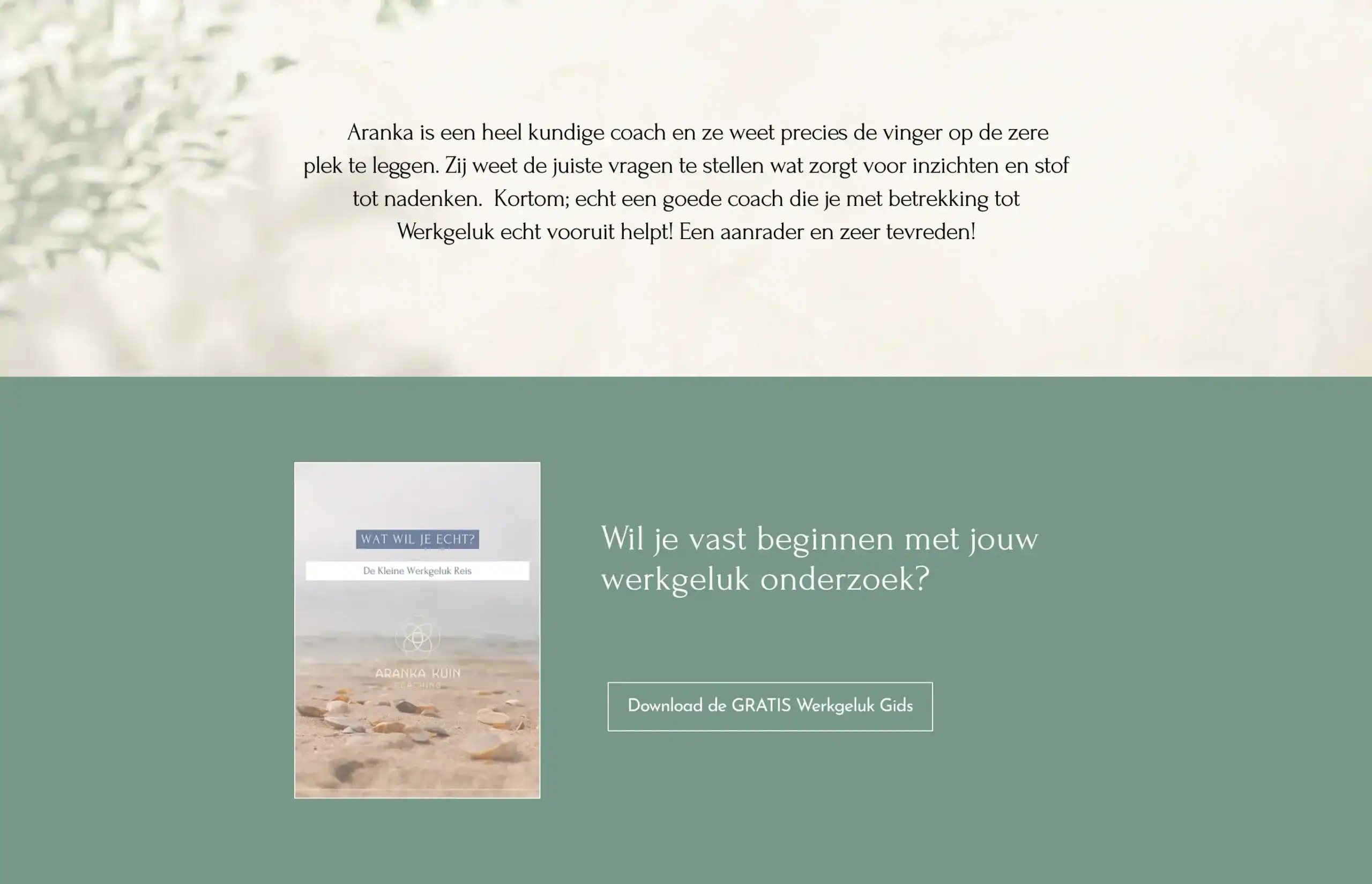 Voor Aranka heb ik haar website opnieuw ontworpen, met als doel een rustige, overzichtelijke en prettige online omgeving te creëren die beter aansluit bij haar manier van werken en haar bestaande huisstijl.